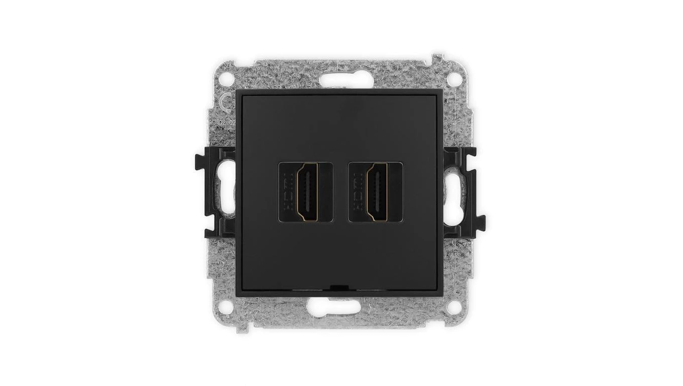 MINI Mechanizm gniazda podwójnego HDMI 2.1, 8K, bez pola opisowego czarny mat 12MHDMIBO-6