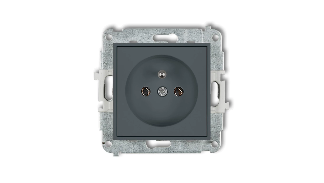MINI Mechanizm gniazda pojedynczego z uziemieniem 2P+Z (bez przesłon torów prądowych) grafitowy mat 28MGP-1z