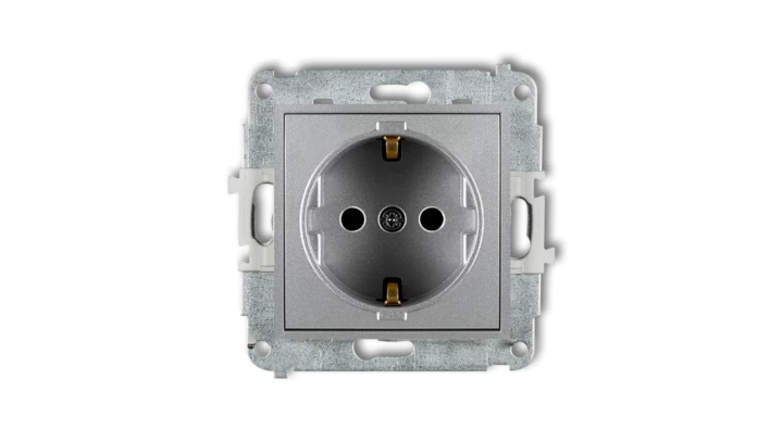 MINI Mechanizm gniazda pojedynczego z uziemieniem SCHUKO 2P+Z (przesłony torów prądowych) srebrny metalik 7MGP-1sp