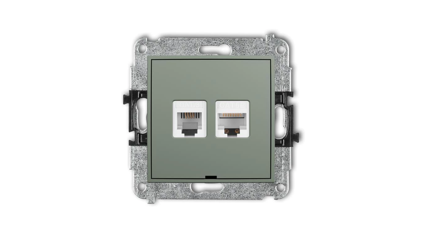 MINI Mechanizm gniazda telefonicznego 1xRJ11 + komp. poj. 1xRJ45 kat. 5e 8-stykowy, beznarzędziowe, bez opisu szałwiowy 61MGTKBO