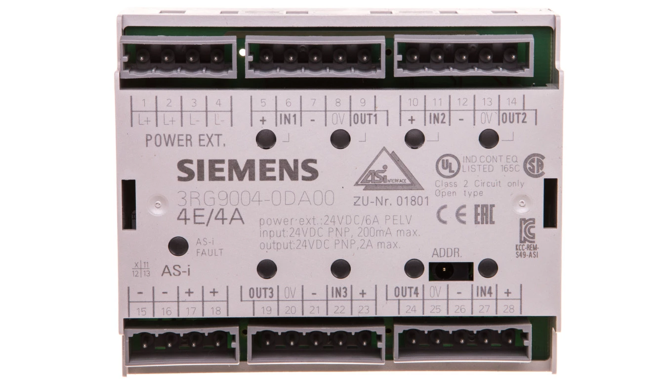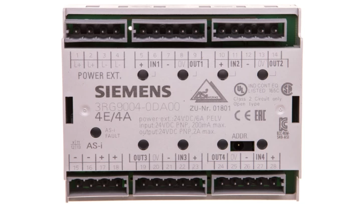 Moduł wejść cyfrowych 4 wejścia 200mA PNP 24V DC AS-INTERFACE 3RG9004-0DA00