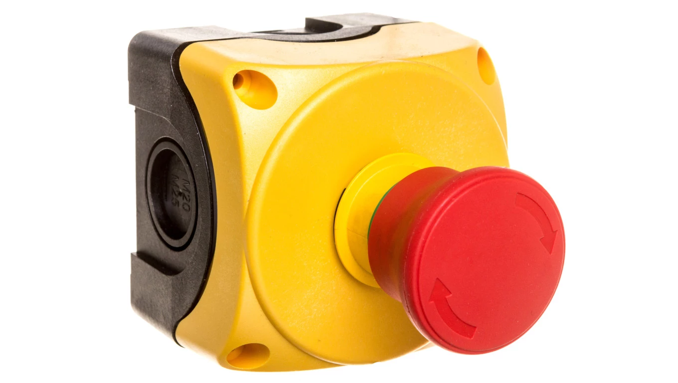 Obudowa żółta LPZP1A5 z przyciskiem grzybkowym LPCB6644, odryglowanie przez obrót, 1NZ LPZP1B503