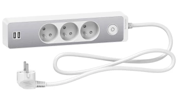Odace Przedłużacz 3 gniazdowy z łącznikiem 2x USB, 1,5m biały ST933U1W
