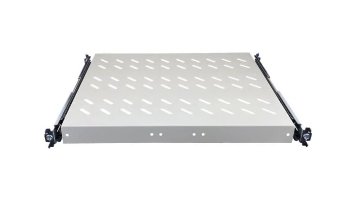 Półka wysuwana 19 1U głęb. 570mm, kolor szary, 4 punkty mocowania