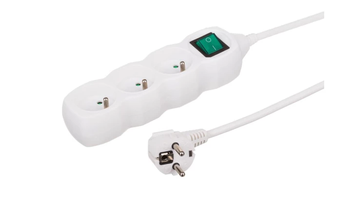 Przedłużacz 3-gniazdowy, 1,5m biały, z wyłącznikiem, 3x1,0mm OWY 35315