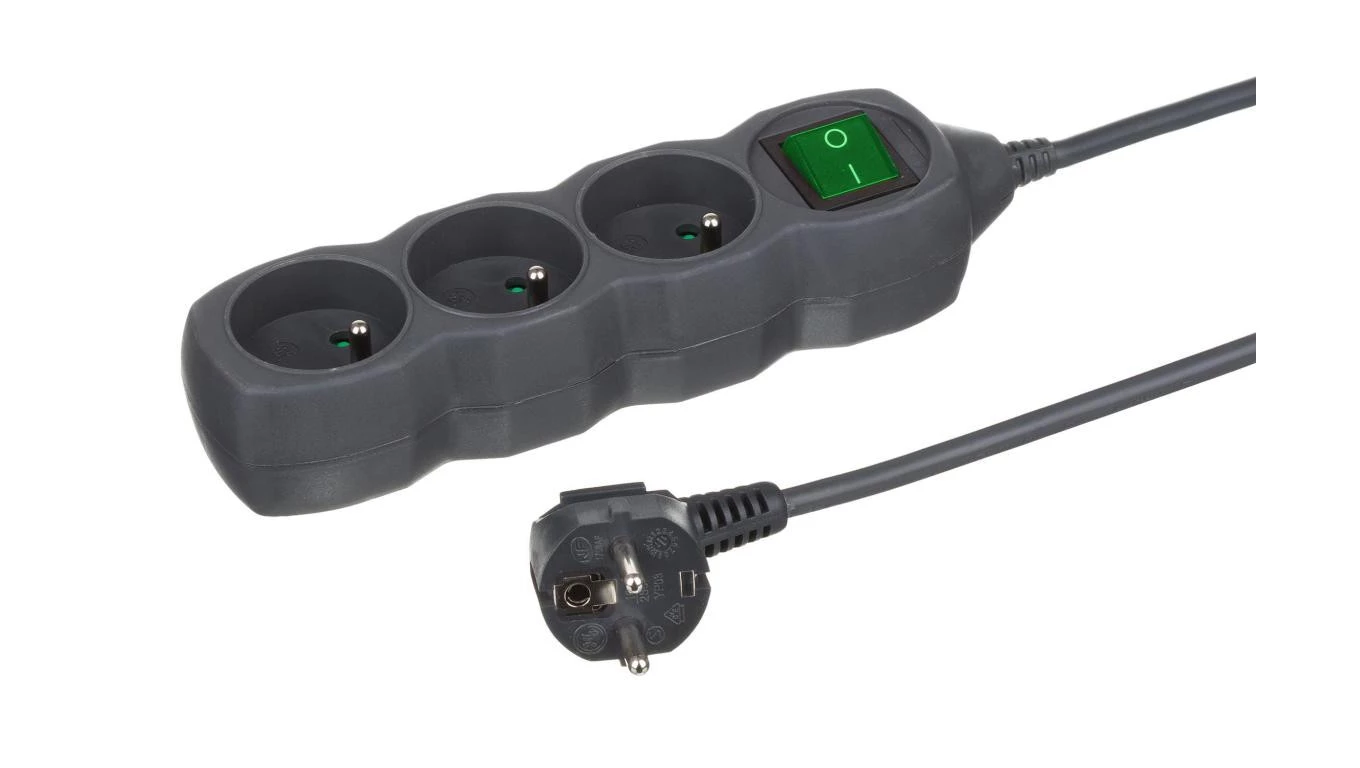 Przedłużacz 3-gniazdowy, 3m, grafit, z wyłącznikiem, 3x1,0mm OWY 24346