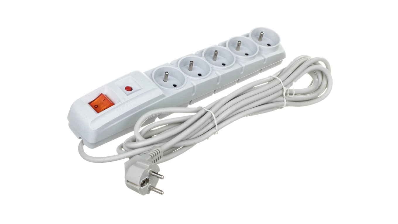 Przedłużacz przeciwprzepięciowy 5-gniazd z/u ACAR F5 5m szary