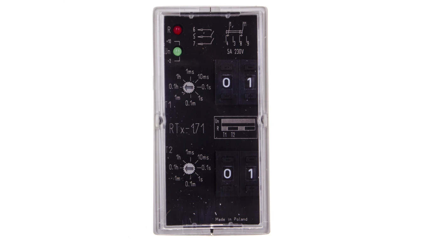 Przekaźnik czasowy 2P 5A 0,001sek-99h 220-230V AC/DC praca cykliczna,(start od załączenia na nastawiony czas) RTX-171 220/230