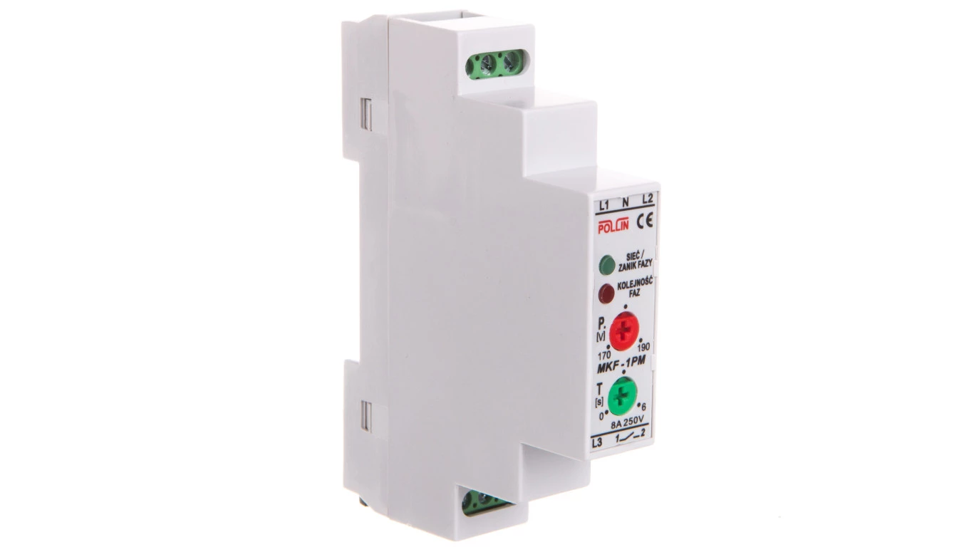 Przekaźnik zaniku, asymetrii i kolejności faz z regulacją 1Z 8A 250V TH35 MKF-1PM