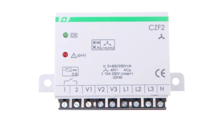 Przekaźnik zaniku i asymetrii faz z kontrolą styków stycznika 10A 1Z 4sek 45V CZF-2