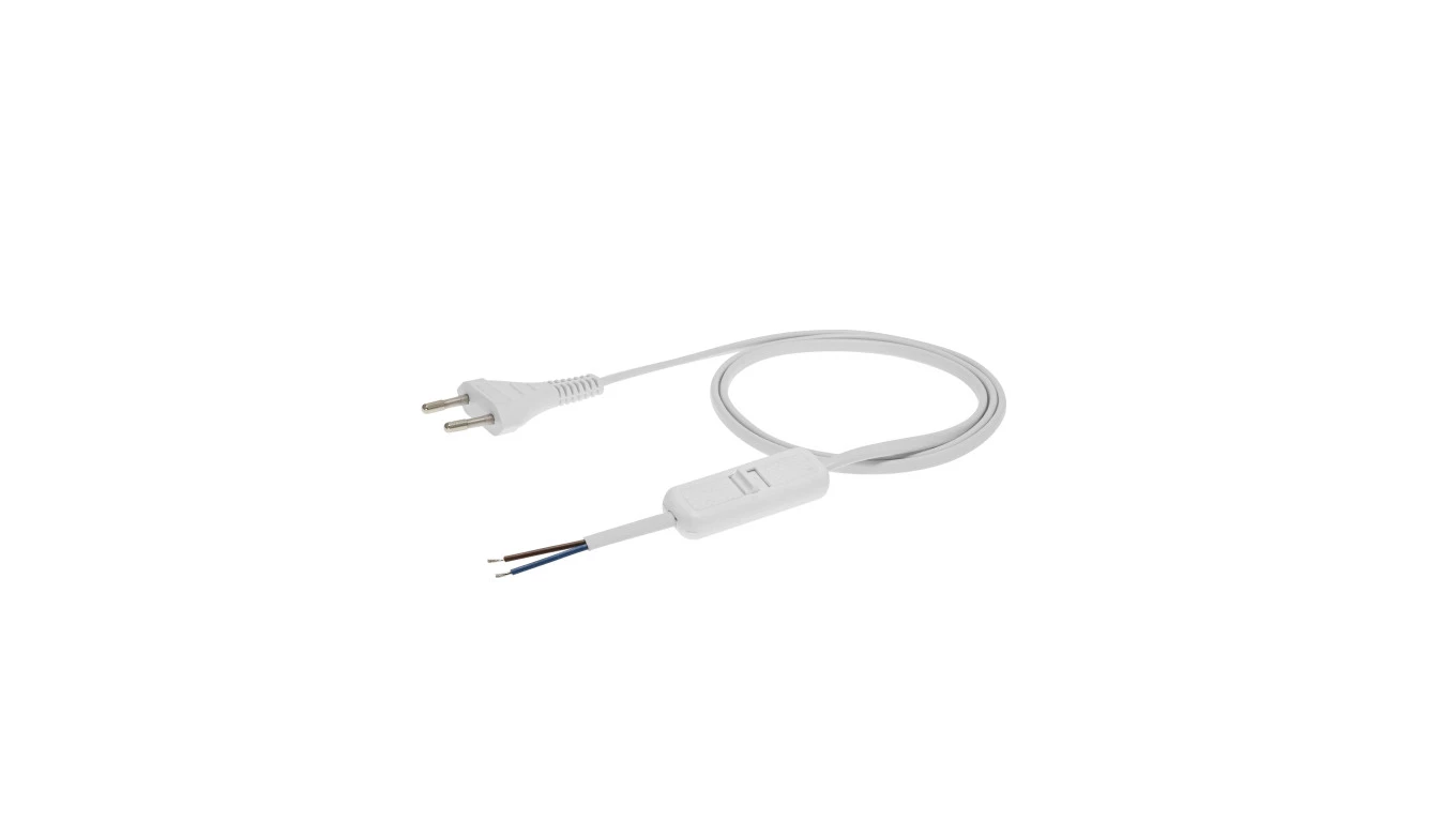 Przewód z wyłącznikiem z płaską wtyczką b/u H03VVH2-F 2x0,5 biały S-13W-0,5-2-1 /2m/