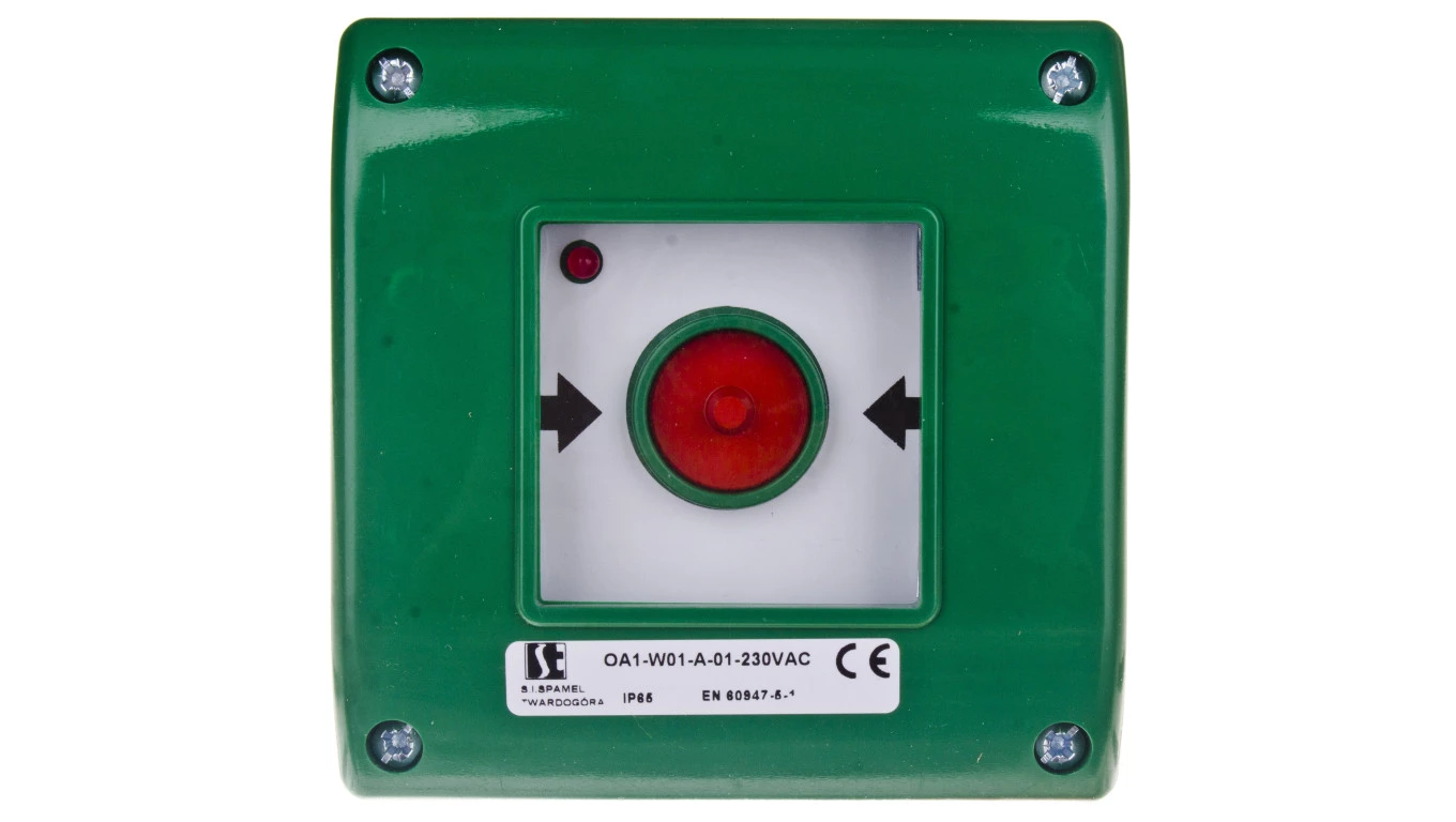 Przycisk awaryjny natynkowy 0Z 1R zielony OA1-W01-A-01-230VAC