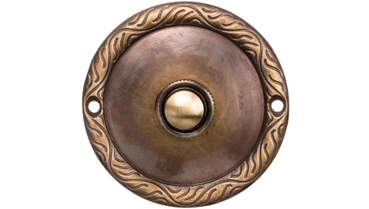 Przycisk /dzwonek/ ozdobny z szyldem okrągłym 1A/50V mosiężny PDM-231-MOS YNS10000023