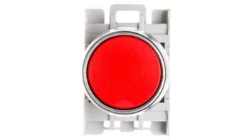 Przycisk kompletny czerwony kryty płaski okrągły 16mm, samoczynny powrót, 1NC, bez oznaczeń, XB6AA42B