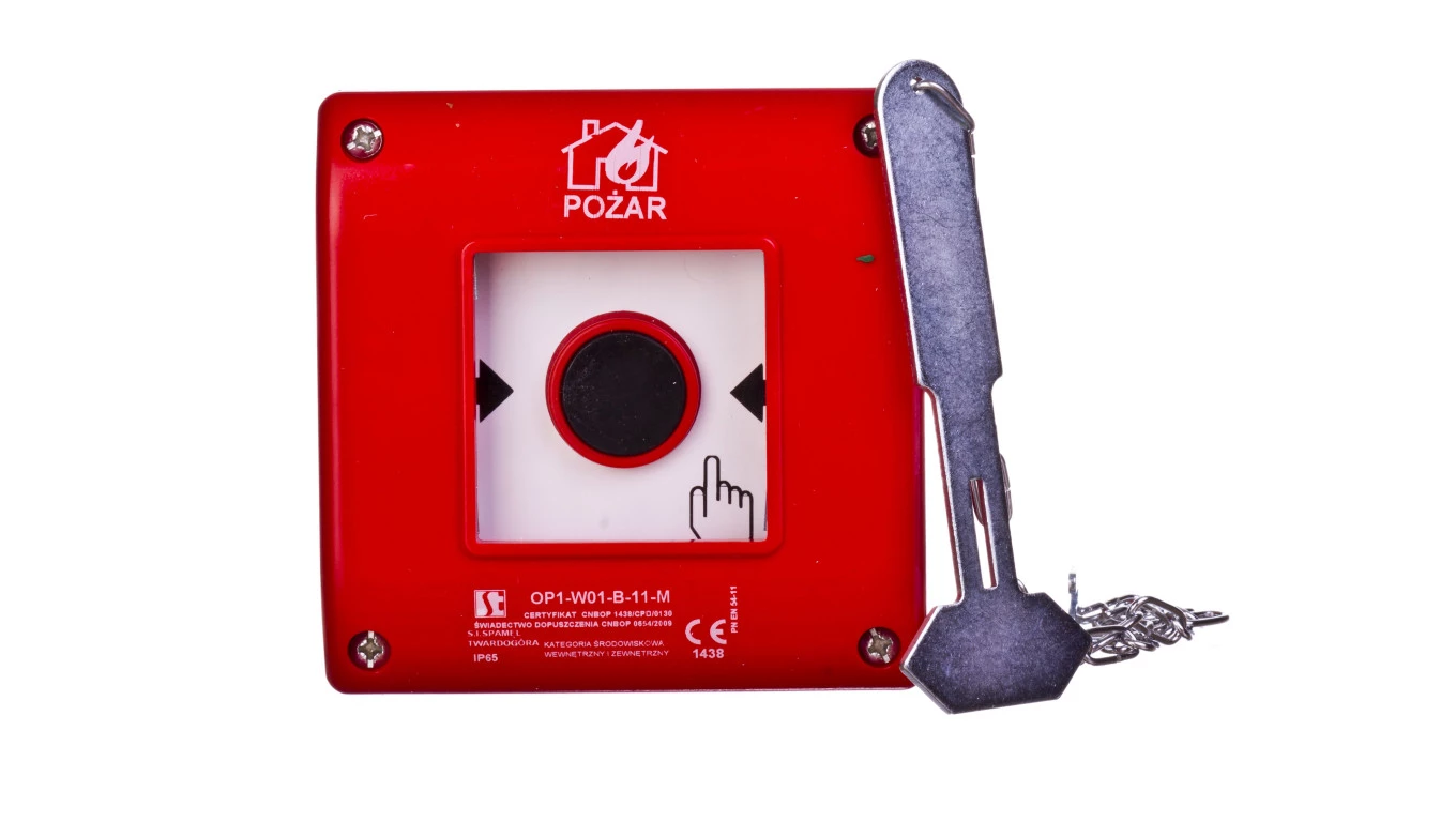 Przycisk ppoż. natynkowy 1Z 1R czerwony z młotkiem OP1-W01-B11-M