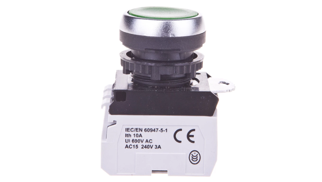 Przycisk sterowniczy 22mm zielony 1Z 1R z samopowrotem z podświetleniem 023759