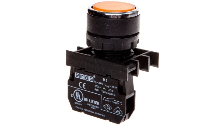 Przycisk sterowniczy kryty, niestabilny, 1NO, żółty T0-B100DS