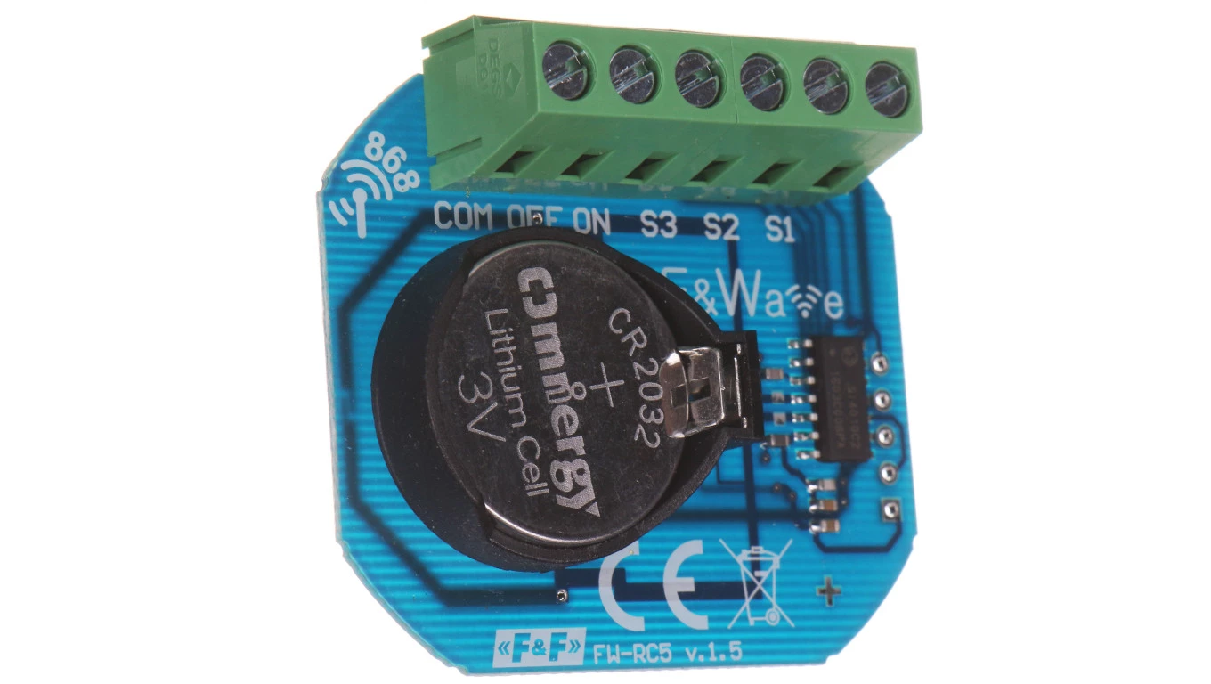 Radiowy bateryjny nadajnik 5-kanałowy - montaż pod przycisk zasilanie 3V FiWave FW-RC5