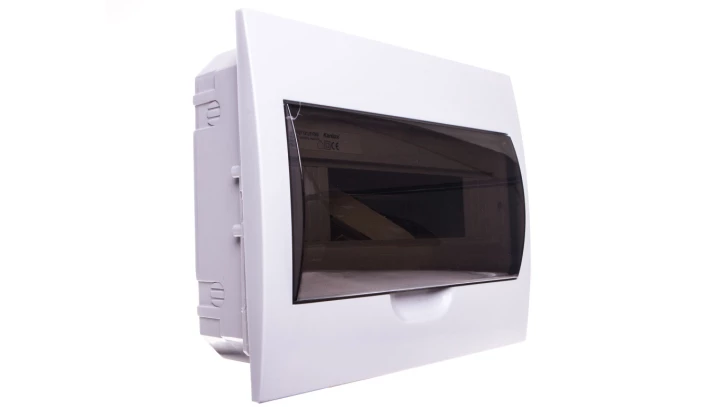 Rozdzielnica modułowa 1x12 podtynkowa IP40 IK06 N+PE II klasa drzwi transparentne szare DB112F 1X12P/FMD biała 3843