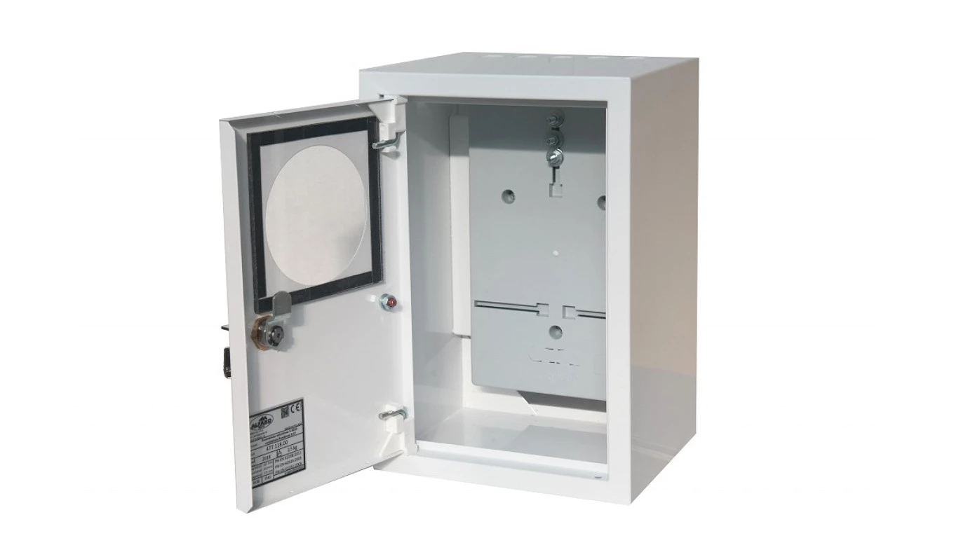 Rozdzielnica natynkowa licznikowa 1x1F zamek okienko RAL 9003A-RZ18