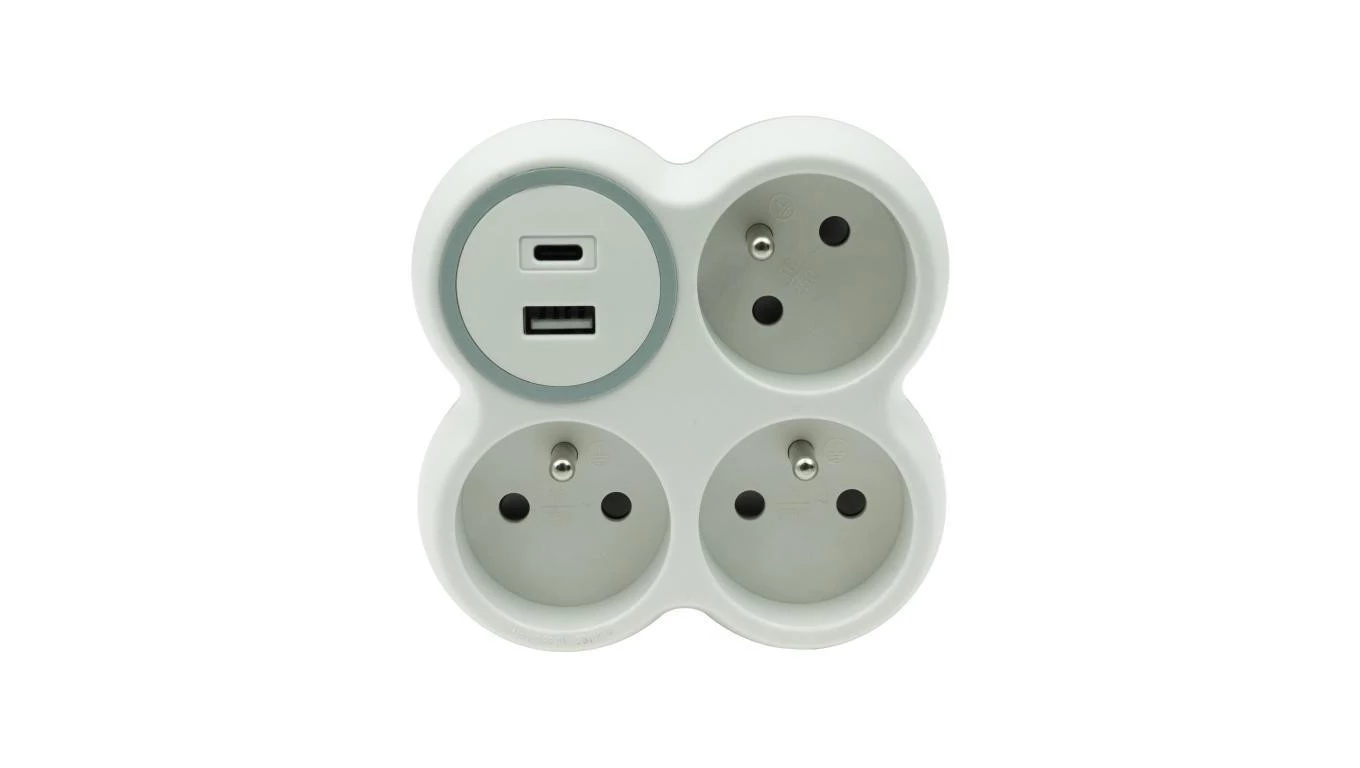 Rozgałęźnik trzykrotny 3x gniazda z/u 1xUSB A 1xUSB C R-31WS/S/B W-72009