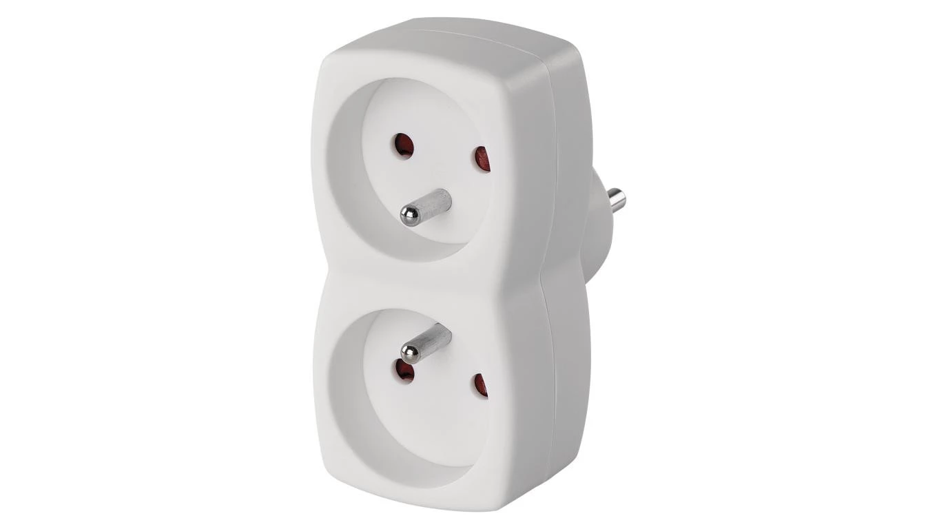 Rozgałęźnik wtyczkowy dwugniazdowy z uziemieniem biały P0028N