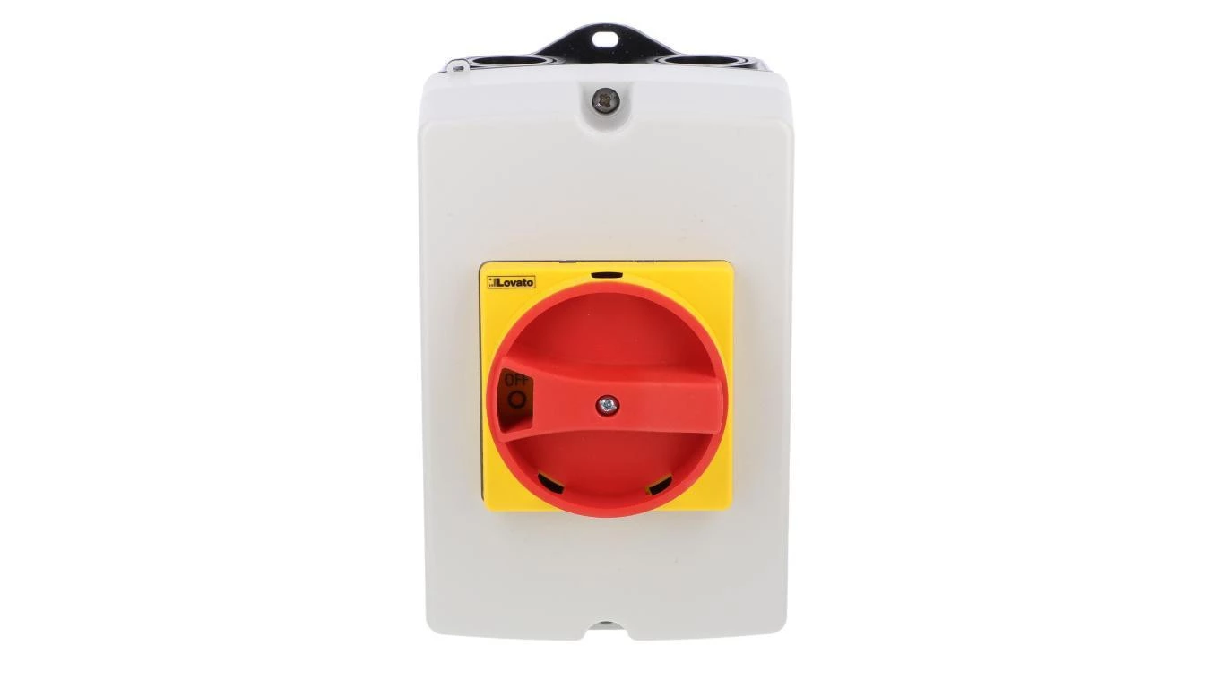 Rozłącznik izolacyjny 3P 16A w obudowie z tworzywa, pokrętło żółto/czerwone GAZ016