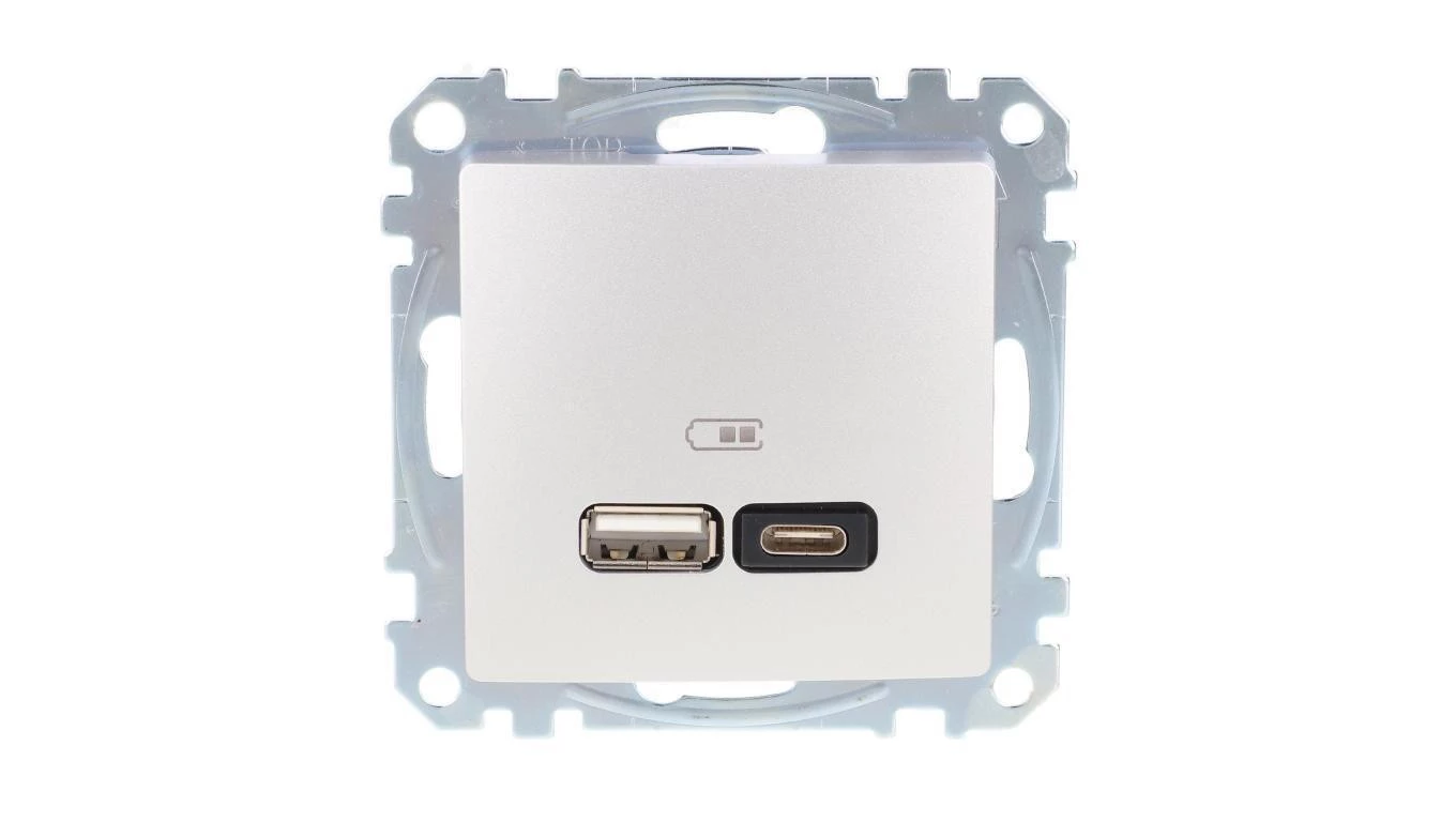 Schneider Electric, Sedna Design i Elements, Gniazdo ładowania USB typ A+C 2,4A, srebrne aluminium, SDD113402