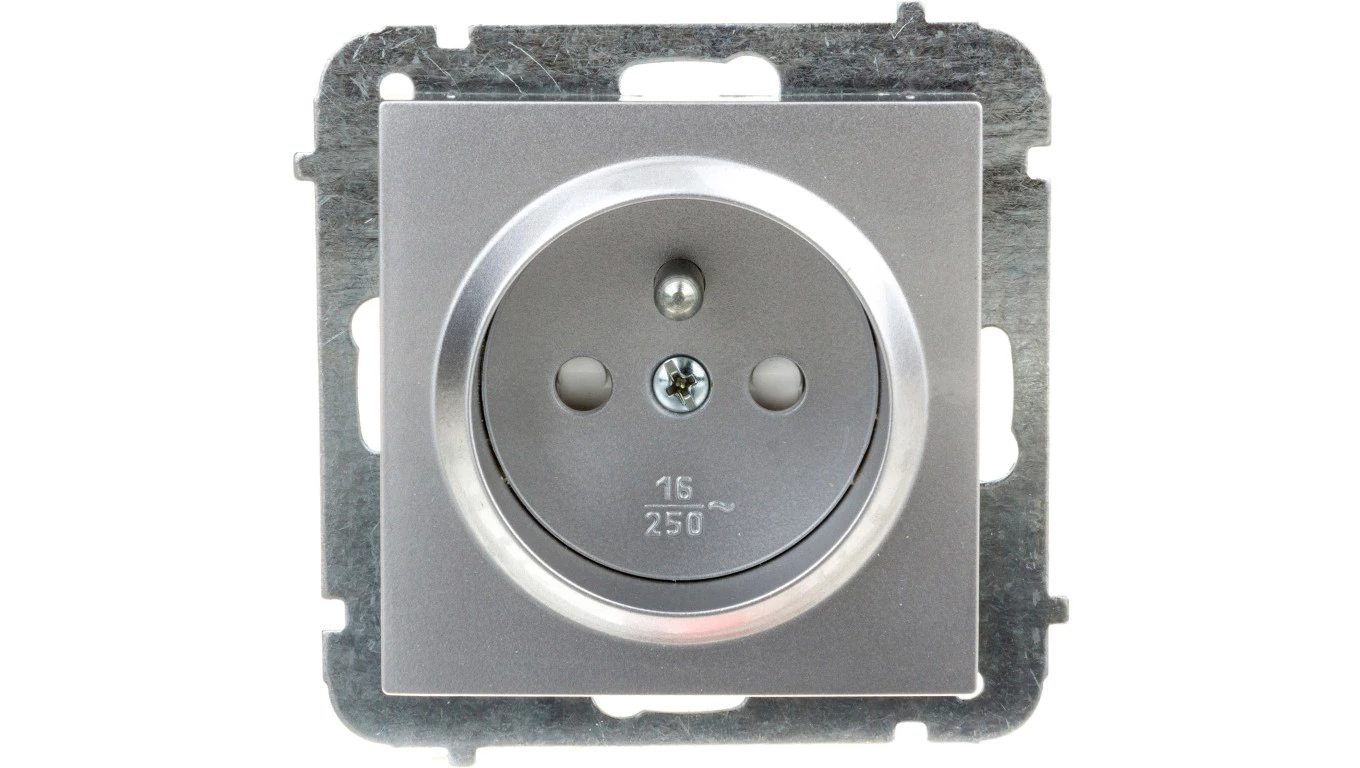 Sentia Gniazdo pojedyncze z/u 16A z przesłonami srebrny połysk 1434-56