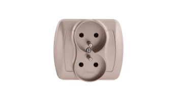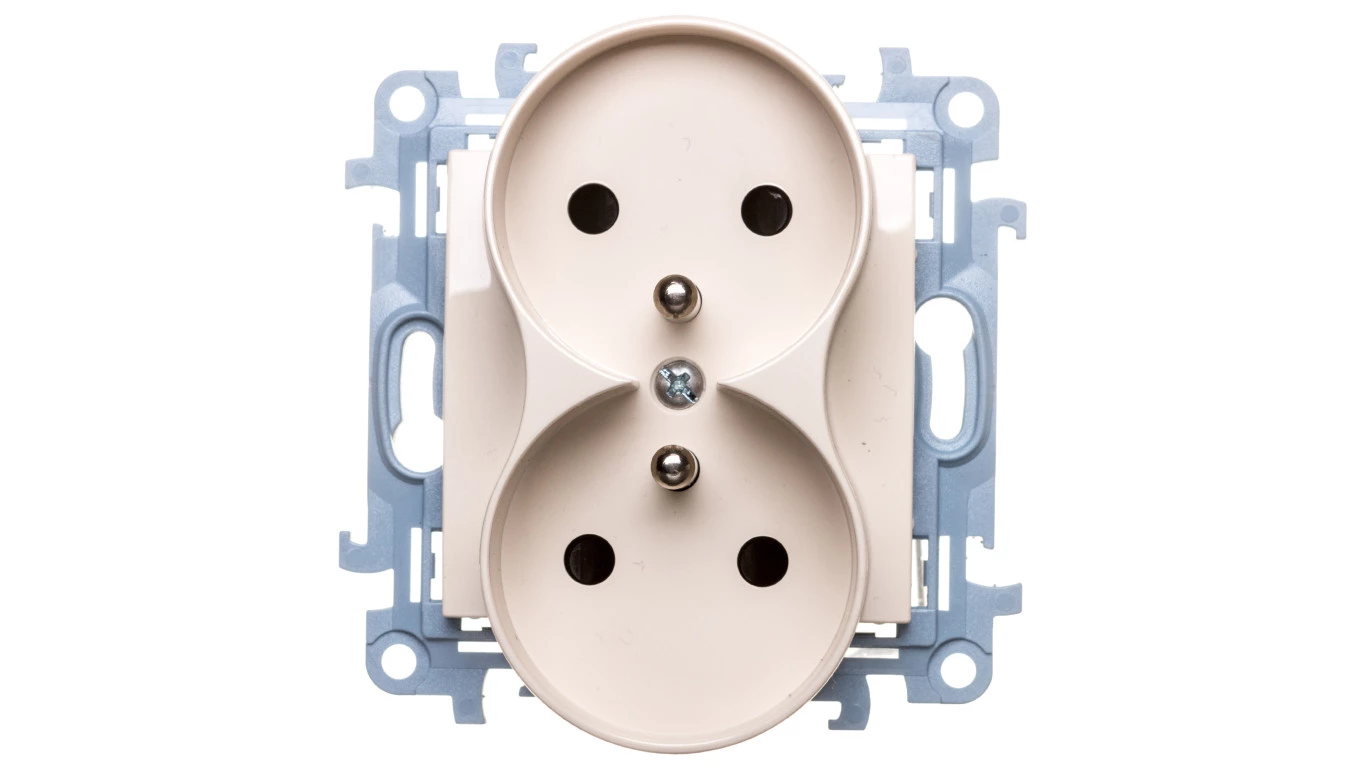 Simon 10 Gniazdo podwójne z/u z przesłonami kremowe 16A 250V IP20 CGZ2MZ.01/41