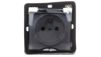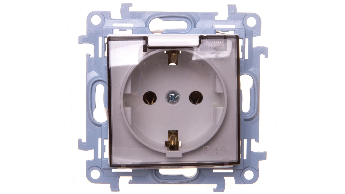 Simon 10 Gniazdo pojedyncze SCHUKO z uszczelką klapka transparetna biała 16A 250V IP44 CGSZ1B.01/11A