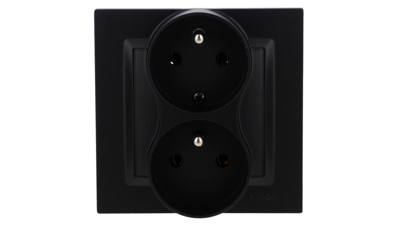 Simon 10 Gniazdo wtyczkowe z uziemieniem podwójne z funkcją niezmienności faz, zaciski śrubowe, kompletne czarny mat CGZ2T/49