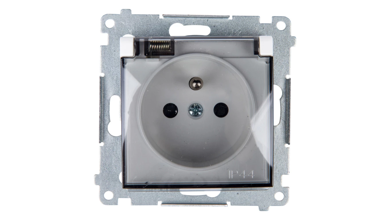Simon 54 Gniazdo bryzgoszczelne z/u IP44 z klapką transparentną białe DGZ1BUZ.01/11A