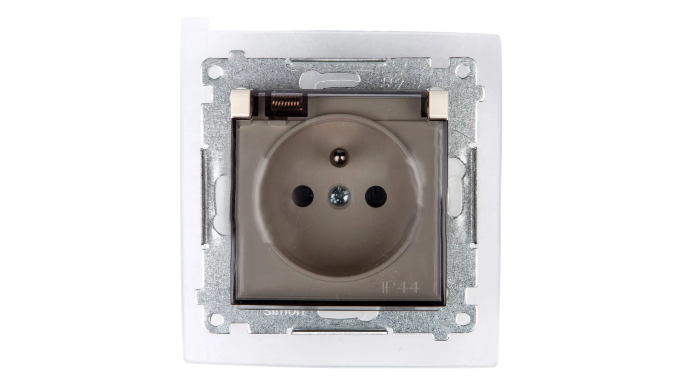 Simon 54 Gniazdo bryzgoszczelne z/u IP44 z klapką transparentną kremowe DGZ1BZ.01/41A