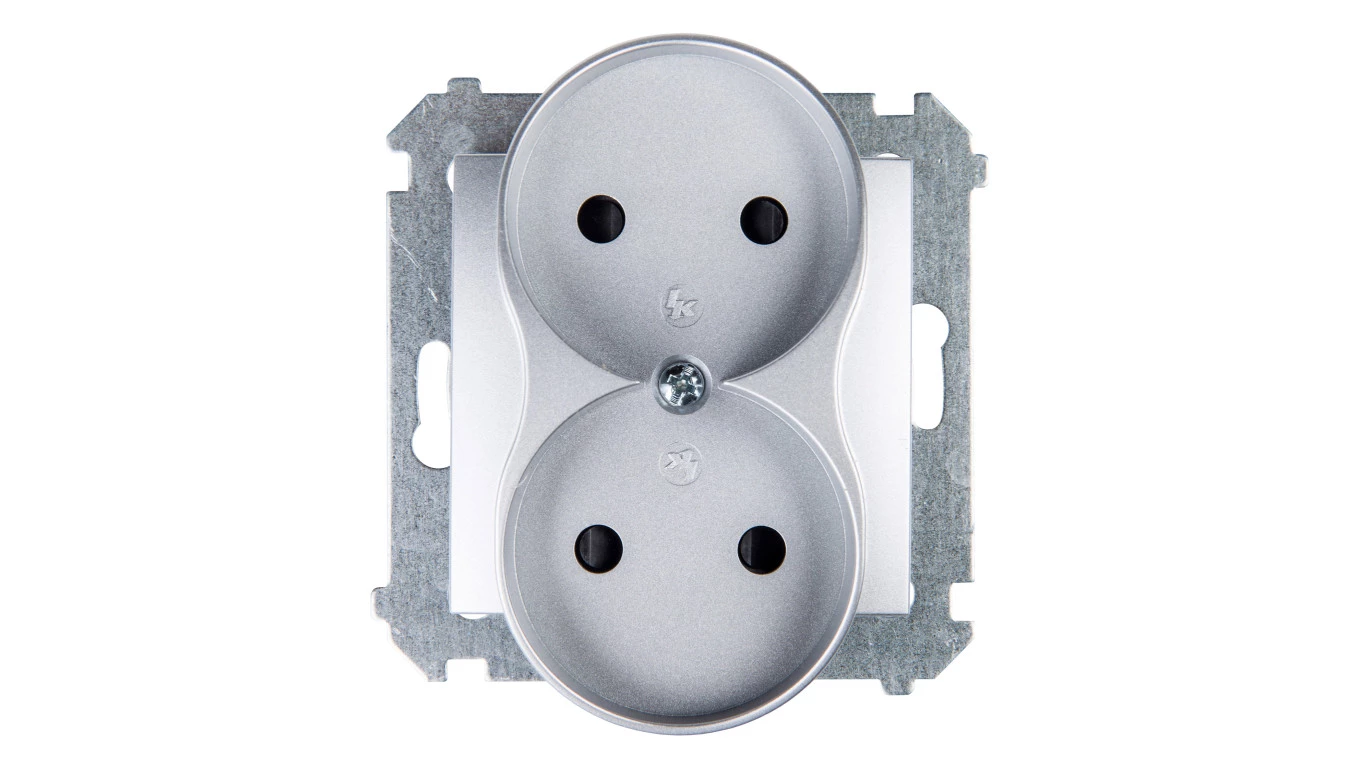Simon 54 Gniazdo podwójne b/u 16A IP20 srebrny mat DG2MZ.01/43