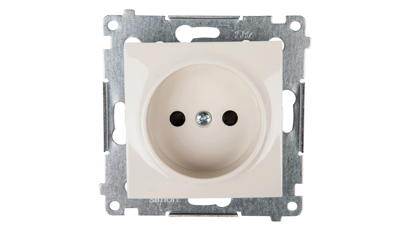 Simon 54 Gniazdo pojedyncze b/u 16A IP20 z przesłoną torów kremowe DG1Z.01/41