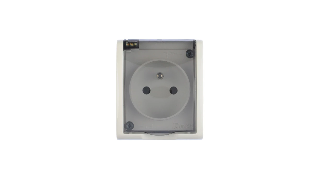 Simon Aquarius Gniazdo hermetyczne pojedyncze z/u IP54 z klapką transparentną białe AQGZ1/11a