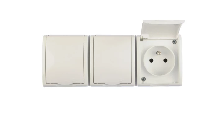 Simon Aquarius Gniazdo hermetyczne potrójne z/u IP54 z klapką pełną białe AQGZ1-3/11