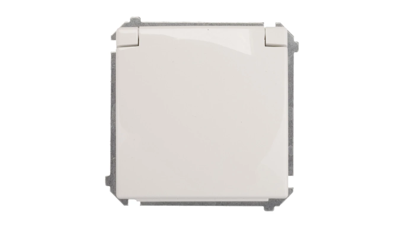 Simon Basic Gniazdo bryzgoszczelne z/u IP44 z przesłoną torów i klapką białe BMGZ1Bz.01/11