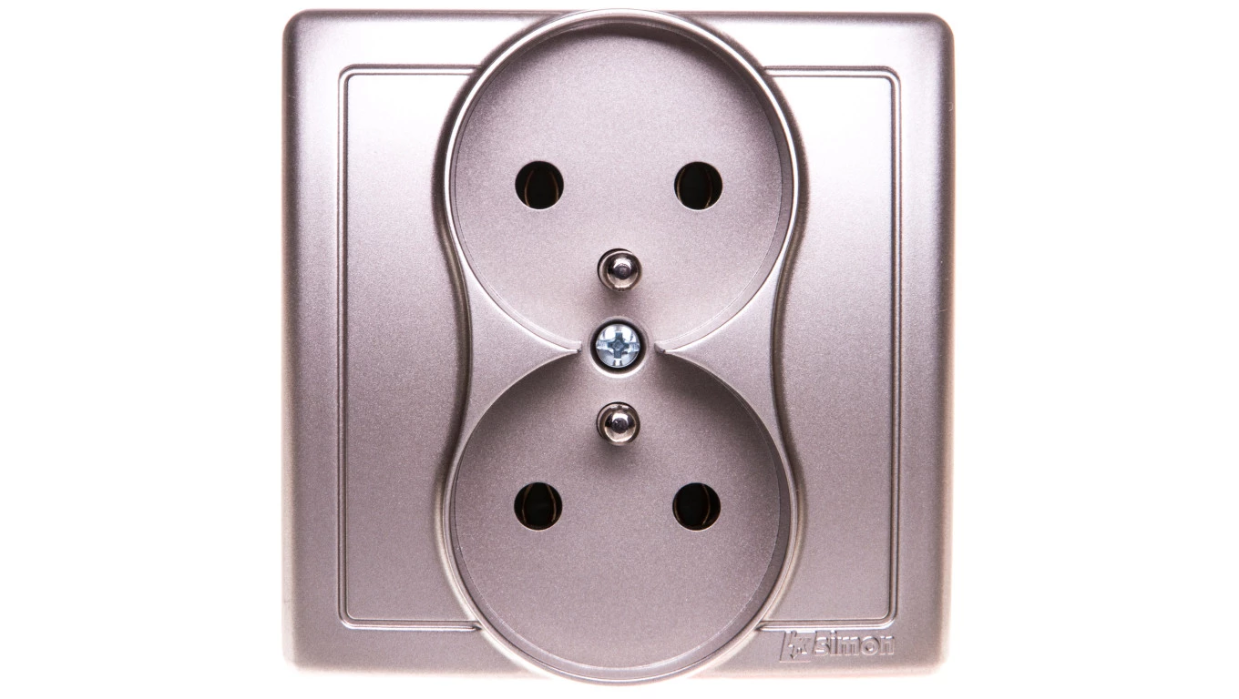Simon Basic Gniazdo podwójne z/u 16A IP20 satyna metalizowana BMGZ2/29