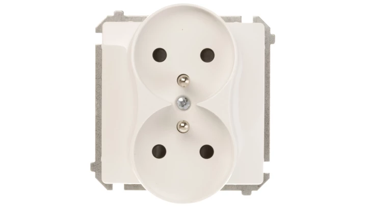 Simon Basic Gniazdo podwójne z/u 16A IP20 z przesłoną torów białe BMGZ2Mz.01/11