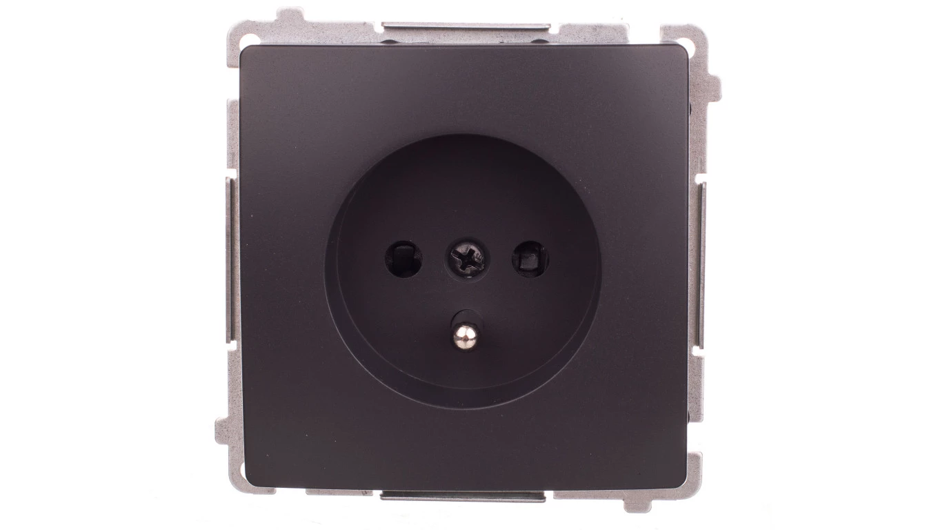 Simon Basic Gniazdo pojedyncze z/u 16A IP20 z przesłoną torów grafit BMGZ1z.01/28