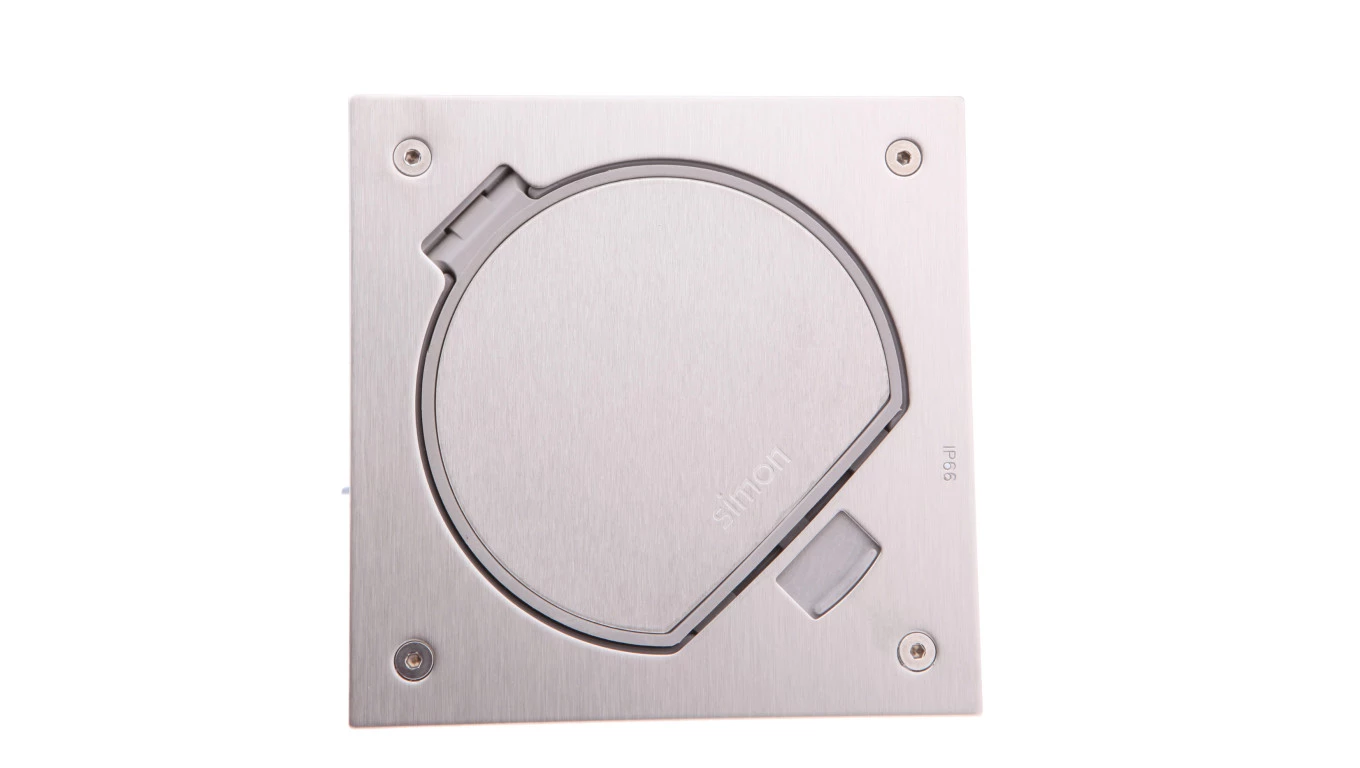 Simon Connect Wkład puszki KSE IP66 z pokrywą i gniazdem K45 pojedynczym z/u 16A IP20 stal nierdzewna KSE2/23/72