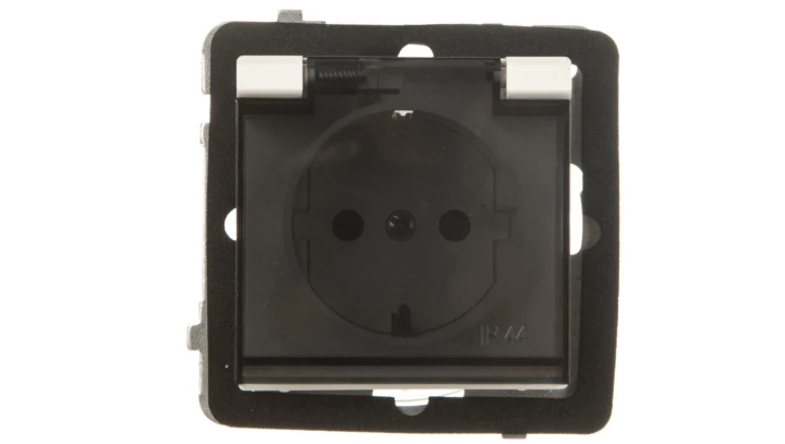 SONATA Gniazdo bryzgoszczelne z/u Schuko IP44 z przesłonami klapka przezroczysta ecru GPH-1RSP/m/27/d
