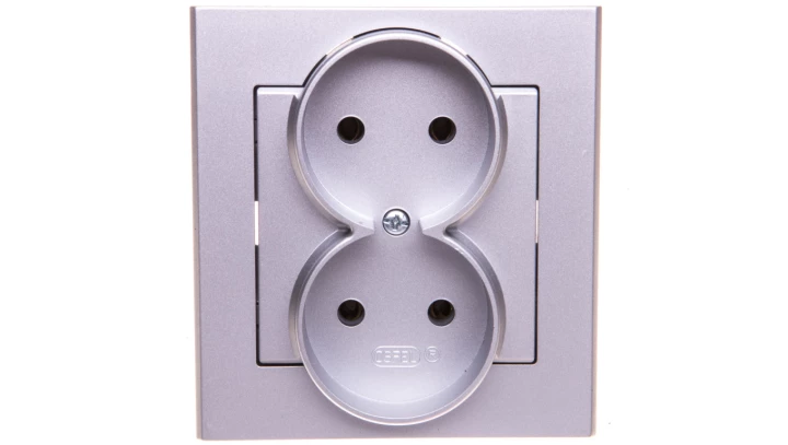 SONATA Gniazdo podwójne b/u srebro mat GP-2R/38
