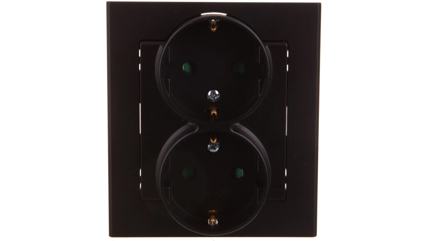 SONATA Gniazdo podwójne z/u Schuko z przesłonami czarny metalik GP-2RSP/33