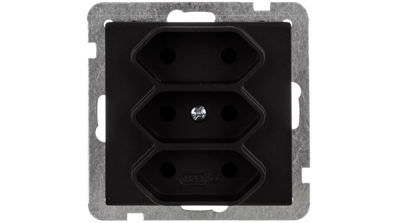 SONATA Gniazdo potrójne b/u 2,5A EURO czarny metalik GP-3R/m/33