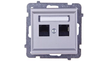 SONATA Gniazdo podwójne b/u srebro mat GP-2R/38