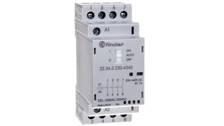 Stycznik modułowy 4Z 25A 230V AC/DC funkcja Auto-On-Off, wskaźnik zadziałania + LED, 35mm 22.34.0.230.4340