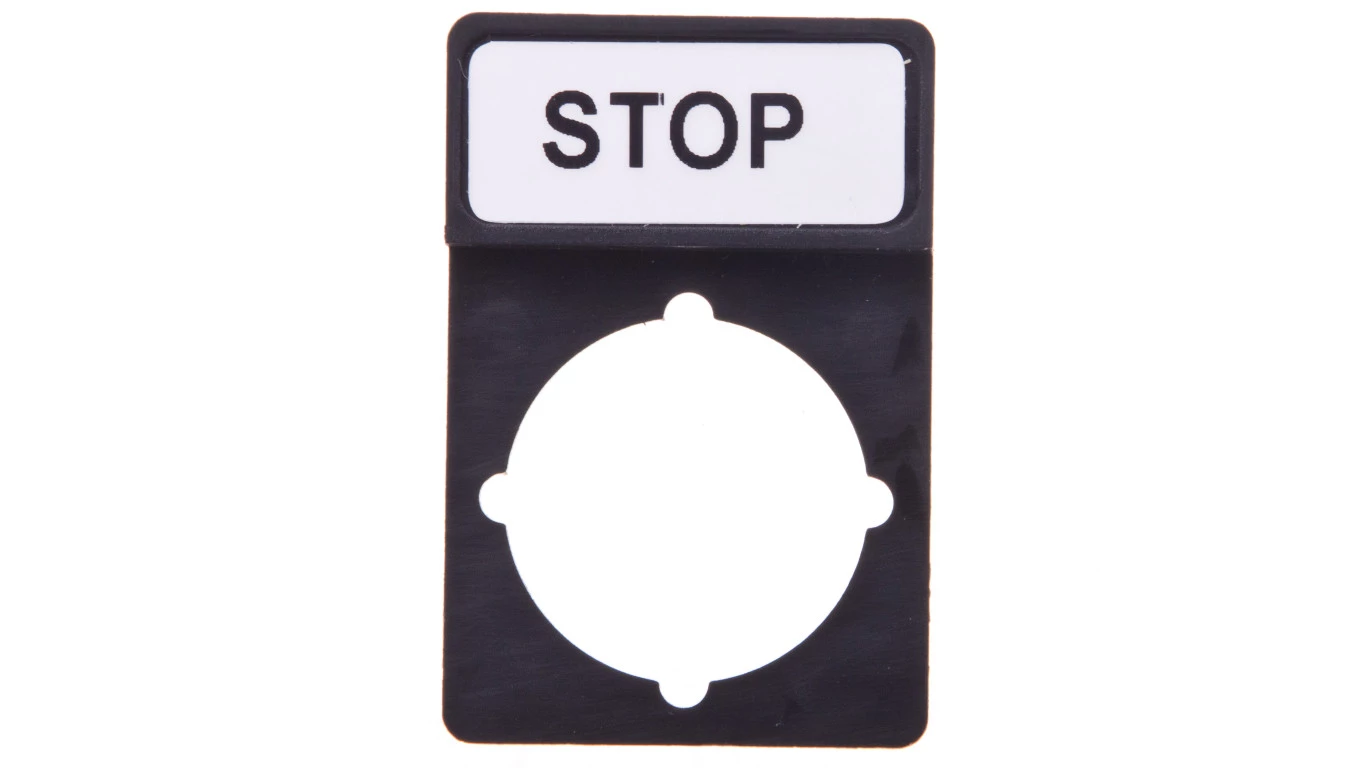 Tabliczka opisowa STOP 44x30mm czarna prostokątna ST22-1901P03